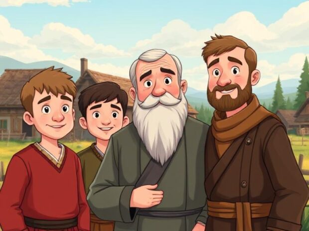 Було у батька три сини, як соколи. Жили добре, робили багато. Старий не натішиться своїми синами. Вже й думає, як то прийдеться хазяйство між ними ділити. Аж ось знайшовся іще один син, четвертий. Ще більше задумався батько: